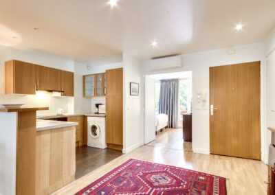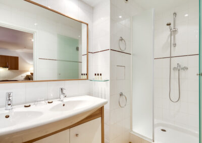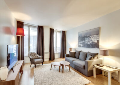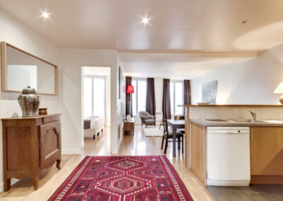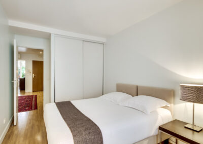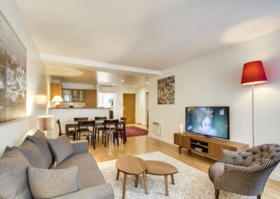 Cet appartement est composé d’un salon et de deux chambres indépendantes. Le salon comprend un canapé-lit 2 places, et chacune des deux chambres un lit double, installés avec leur linge de maison de qualité hôtelière. On dispose d’un petit espace de travail incluant une connexion Internet illimitée et gratuite. La cuisine entièrement équipée permet de préparer ses repas comme chez soi. L’appartement offre par ailleurs toutes les commodités, une penderie ainsi que de nombreux espaces de rangement.