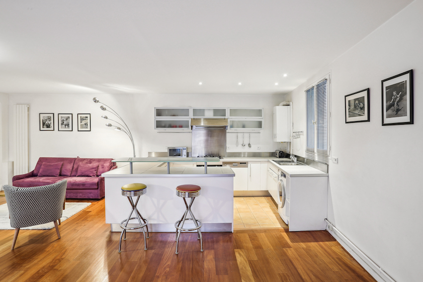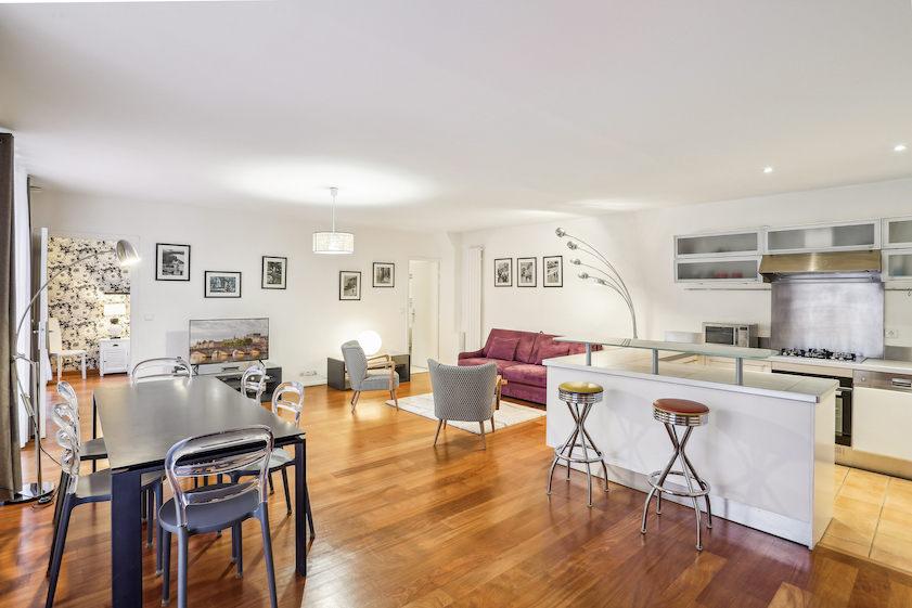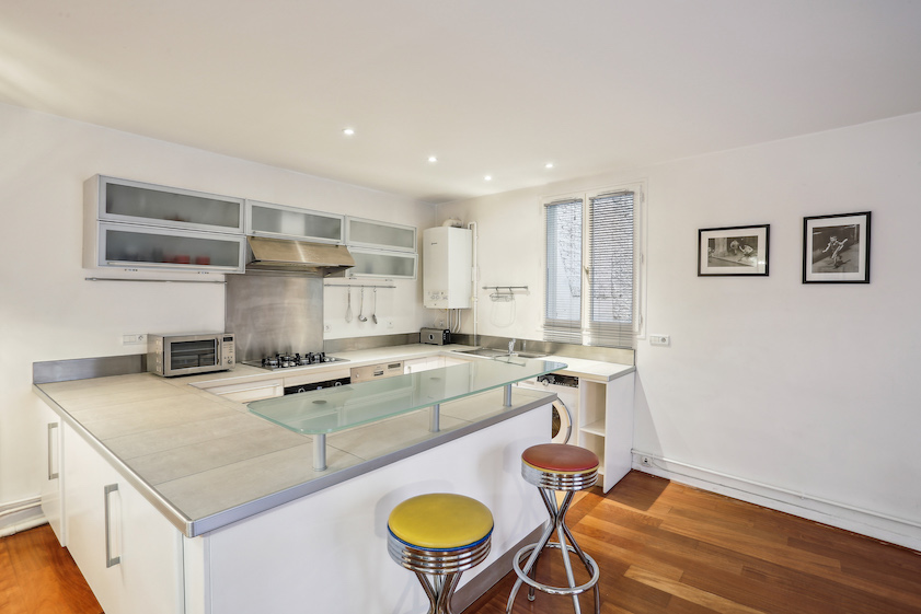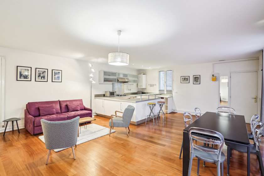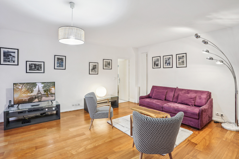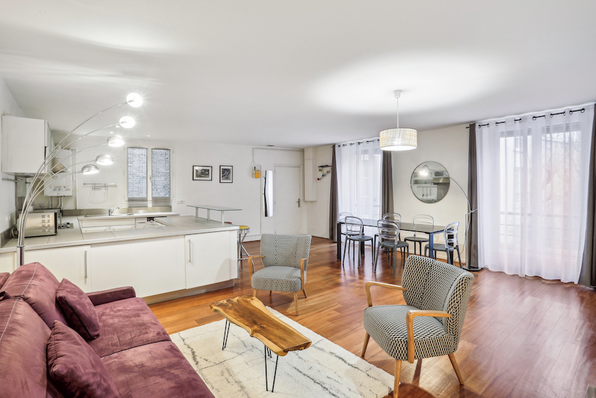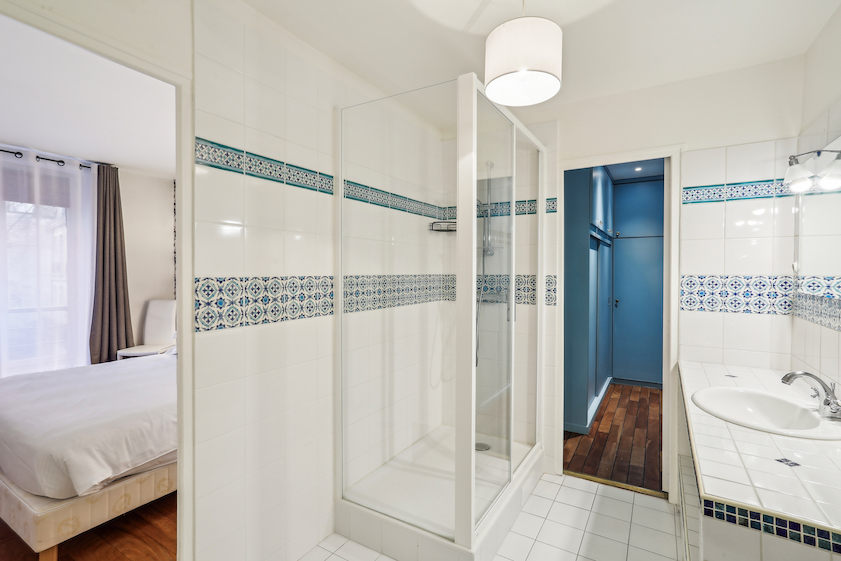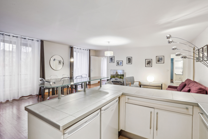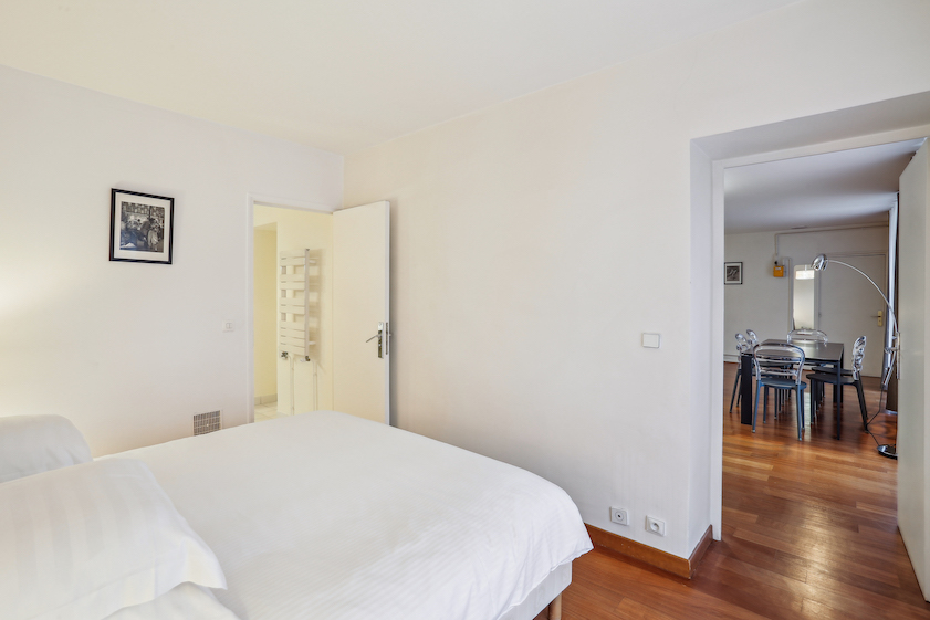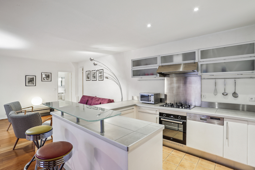 Cet appartement est composé d’un salon et d’une chambre indépendante. Le salon comprend un canapé-lit 2 places, et la chambre un lit double, installés avec leur linge de maison de qualité hôtelière. On dispose d’un petit espace de travail incluant une connexion Internet illimitée et gratuite. La cuisine entièrement équipée permet de préparer ses repas comme chez soi. L’appartement offre toutes les commodités, une penderie ainsi que de nombreux espaces de rangement.